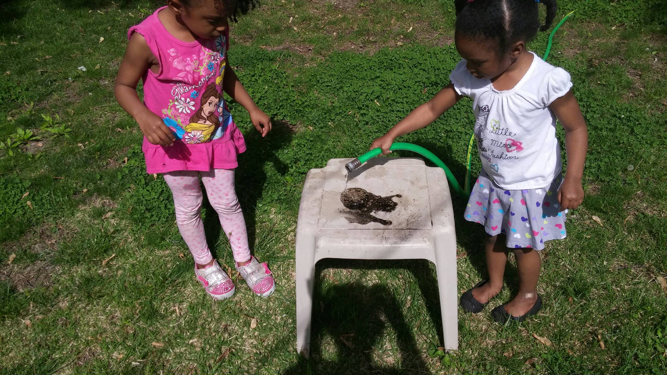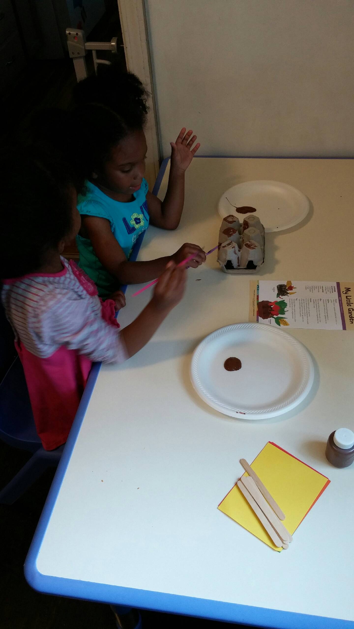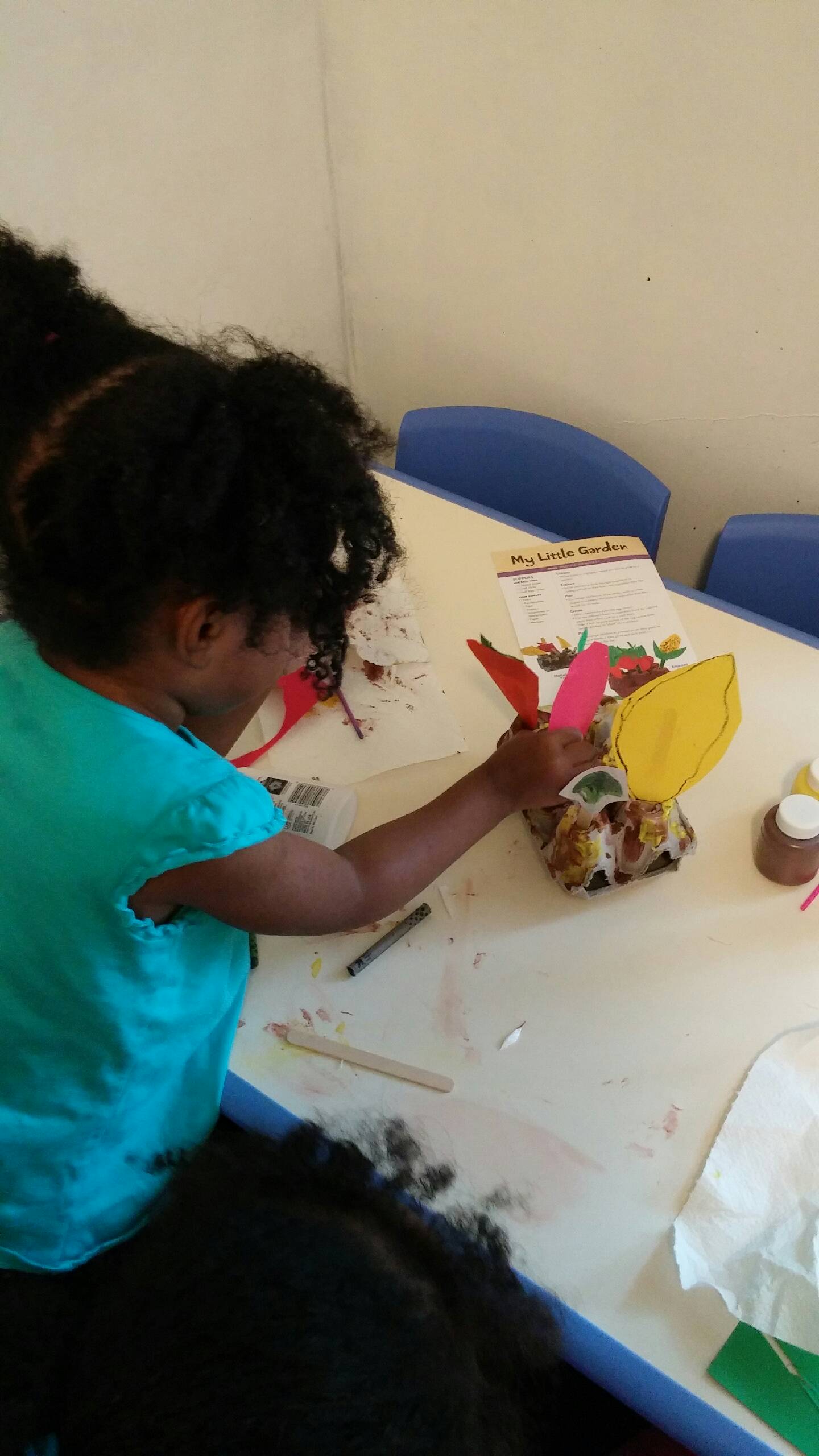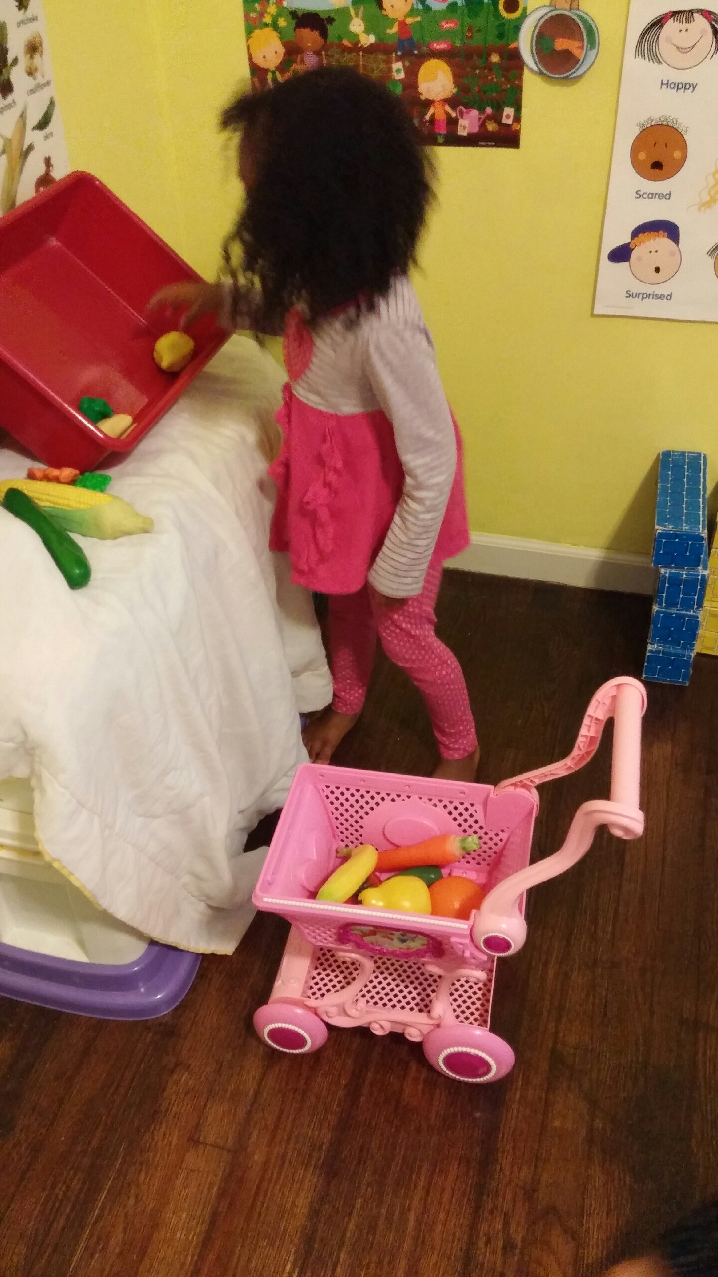Once we left the Koi pond the girls fed the chickens and pet a sheep. Then played at the playground and explored a log cabin. This was a great way to end Growing Garden.