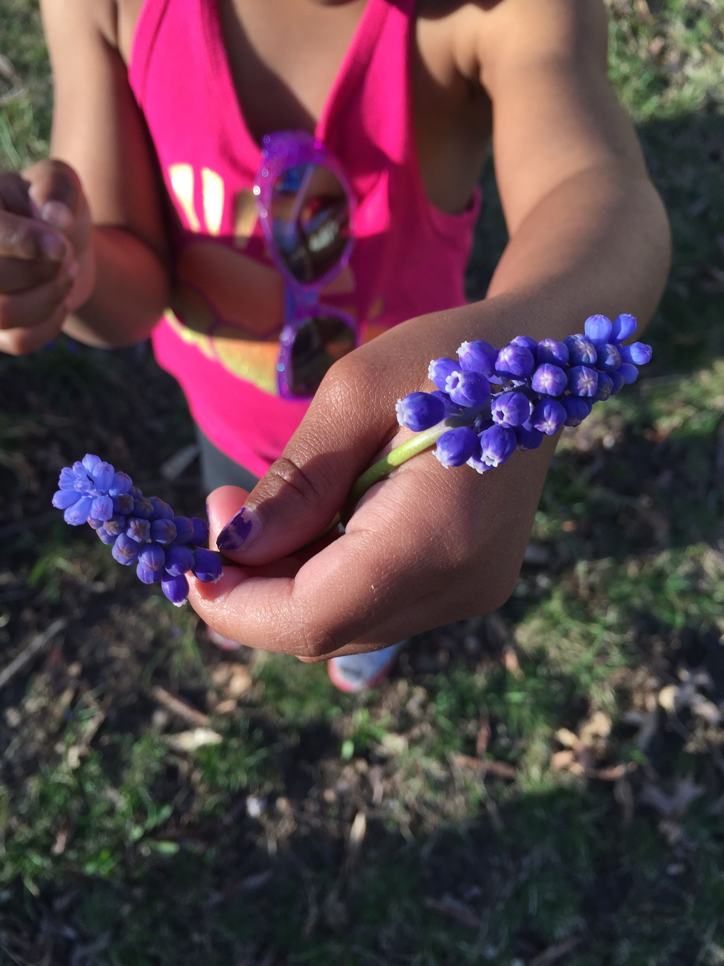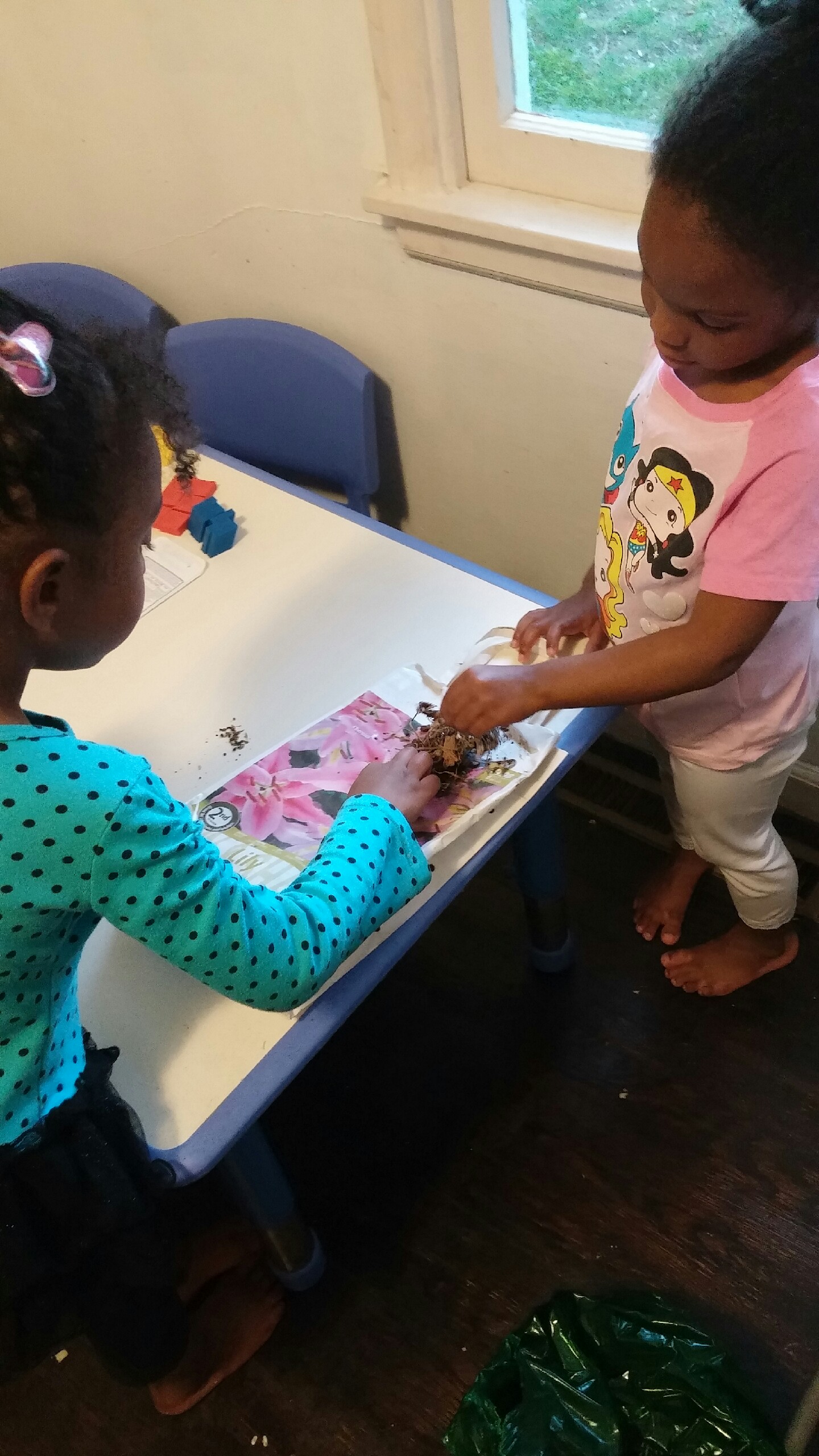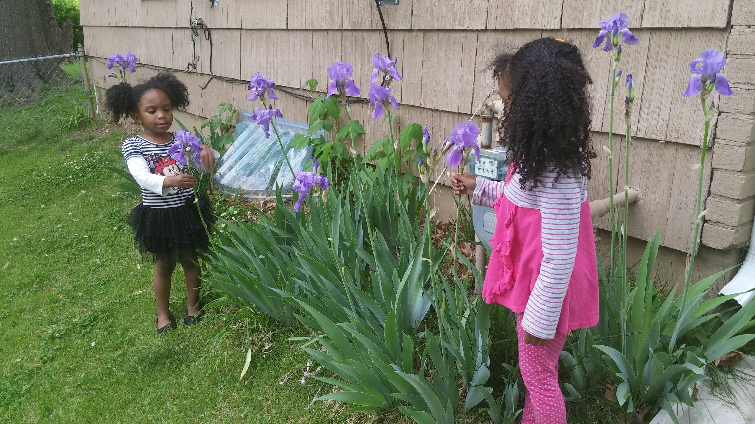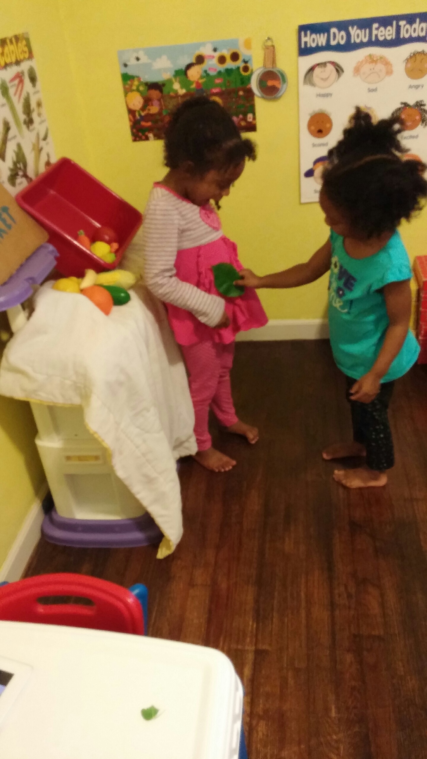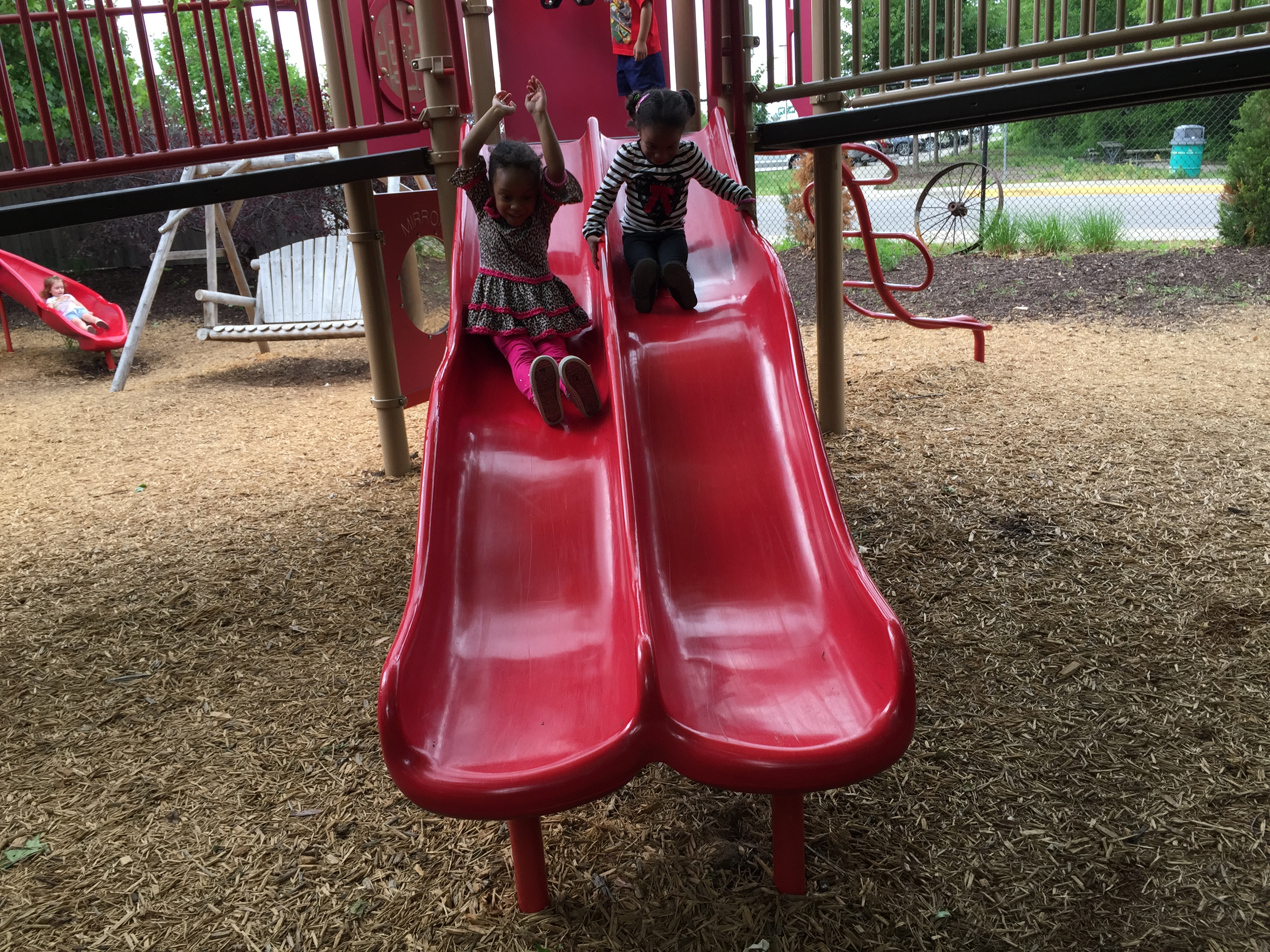 Once we left the Koi pond the girls fed the chickens and pet a sheep. Then played at the playground and explored a log cabin. This was a great way to end Growing Garden.