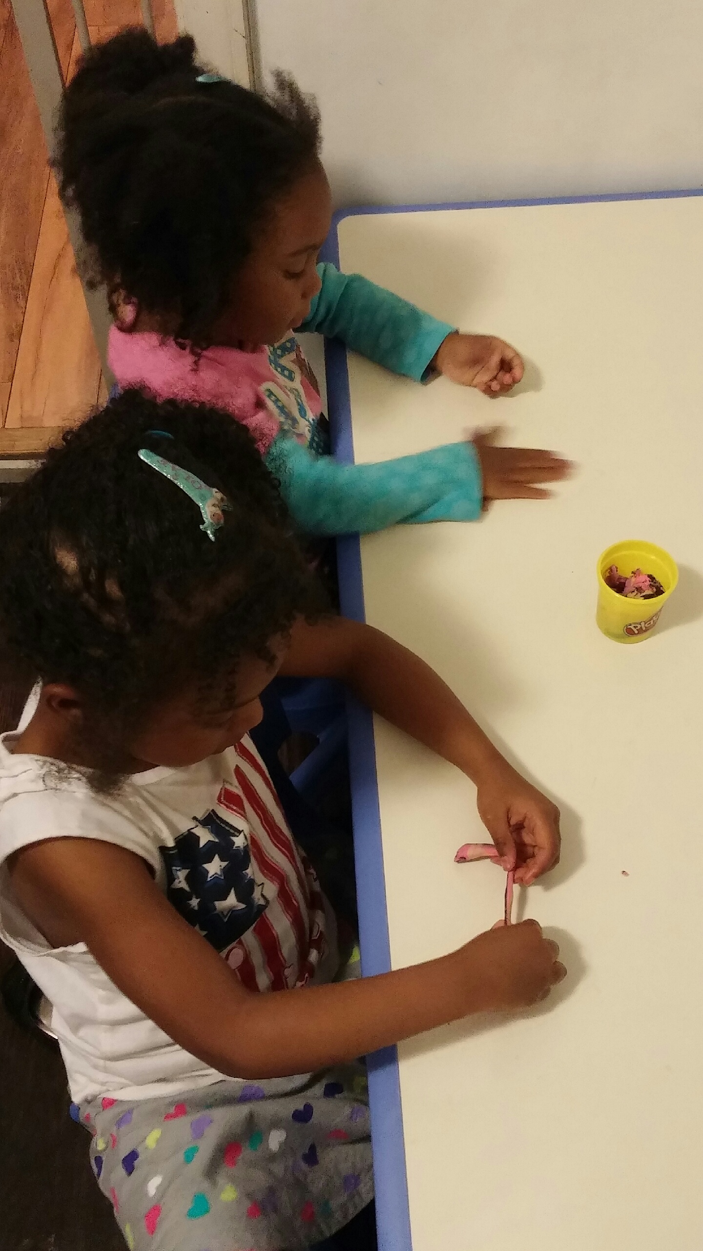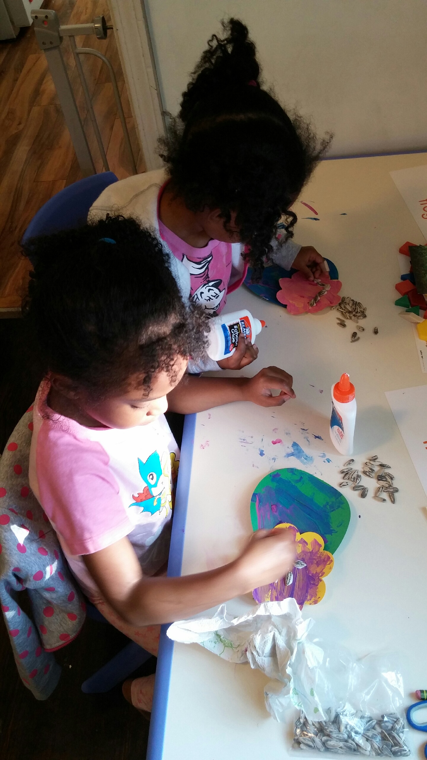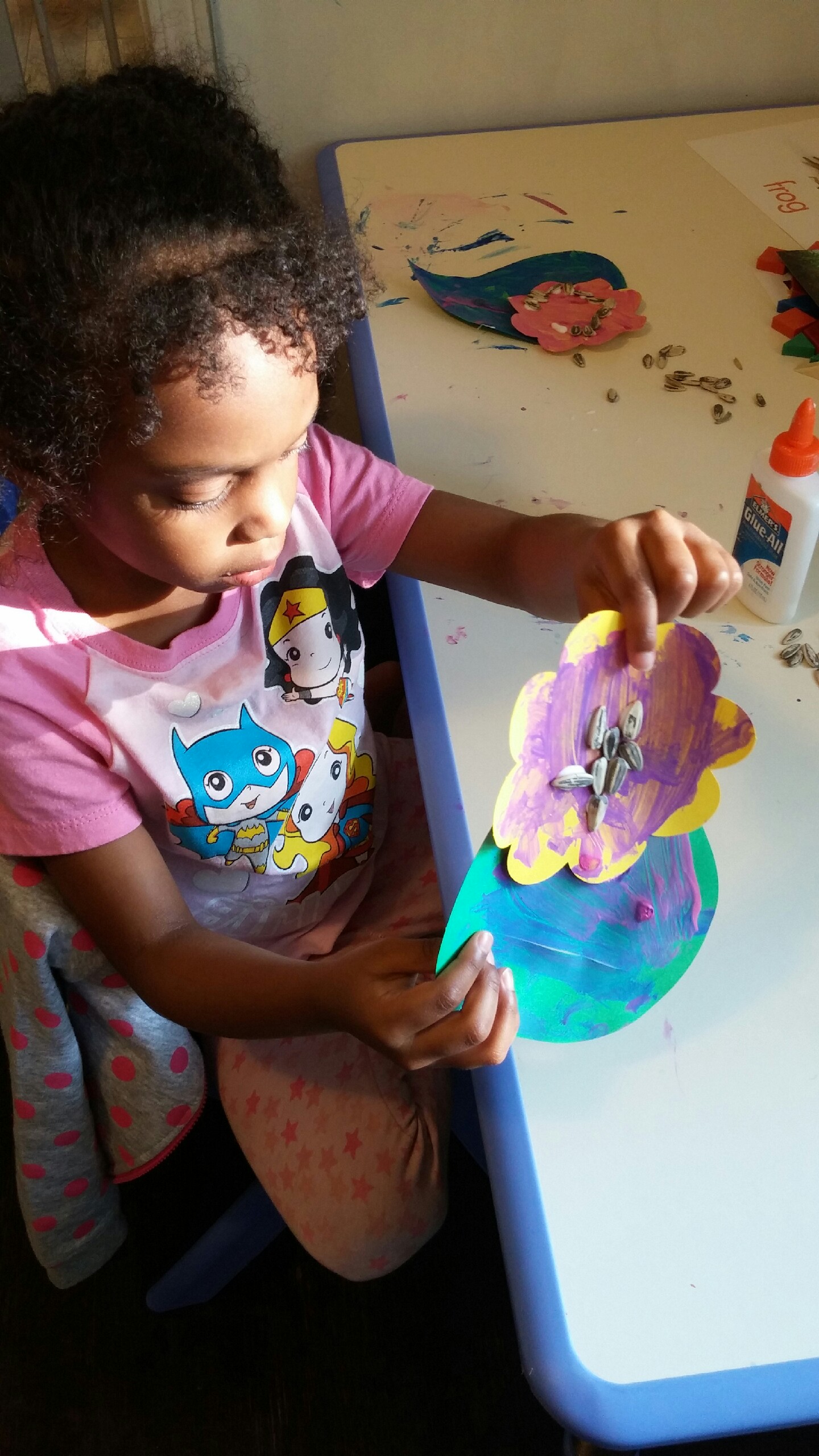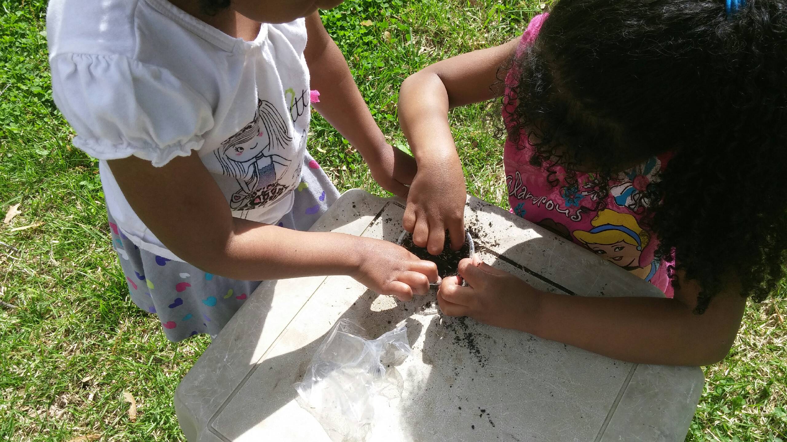 Once we left the Koi pond the girls fed the chickens and pet a sheep. Then played at the playground and explored a log cabin. This was a great way to end Growing Garden.