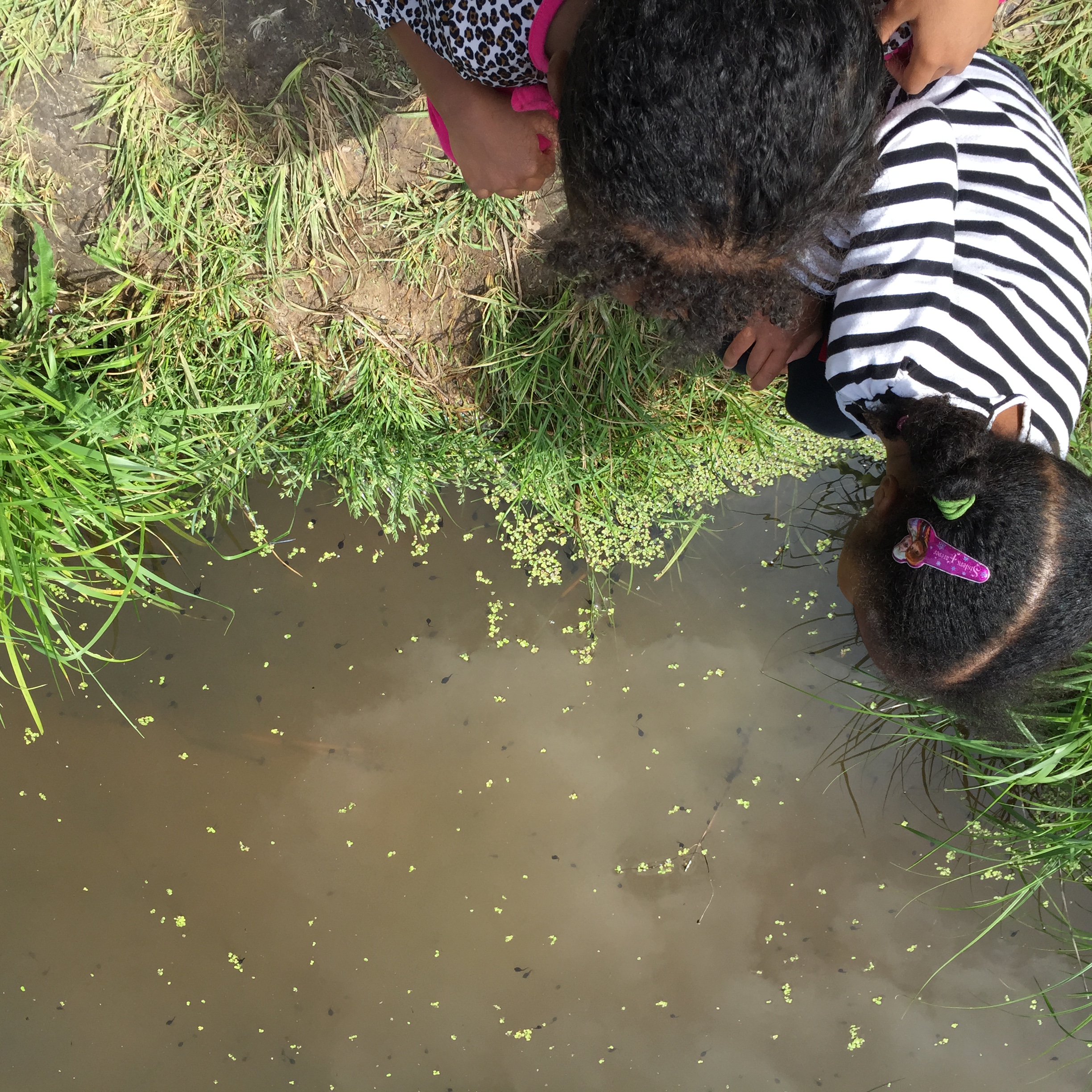 Hi everyone, so last weekend we went to Deanna Rose Children’s Farmstead. This is one of our favorite places to go in the spring and summer because the girls get to interact with the animals. Â So the first thing the girls like to is check out the chicken coup then head to the barn to see the new baby farm animals. On the way to the barn we saw tad poles in the pond.