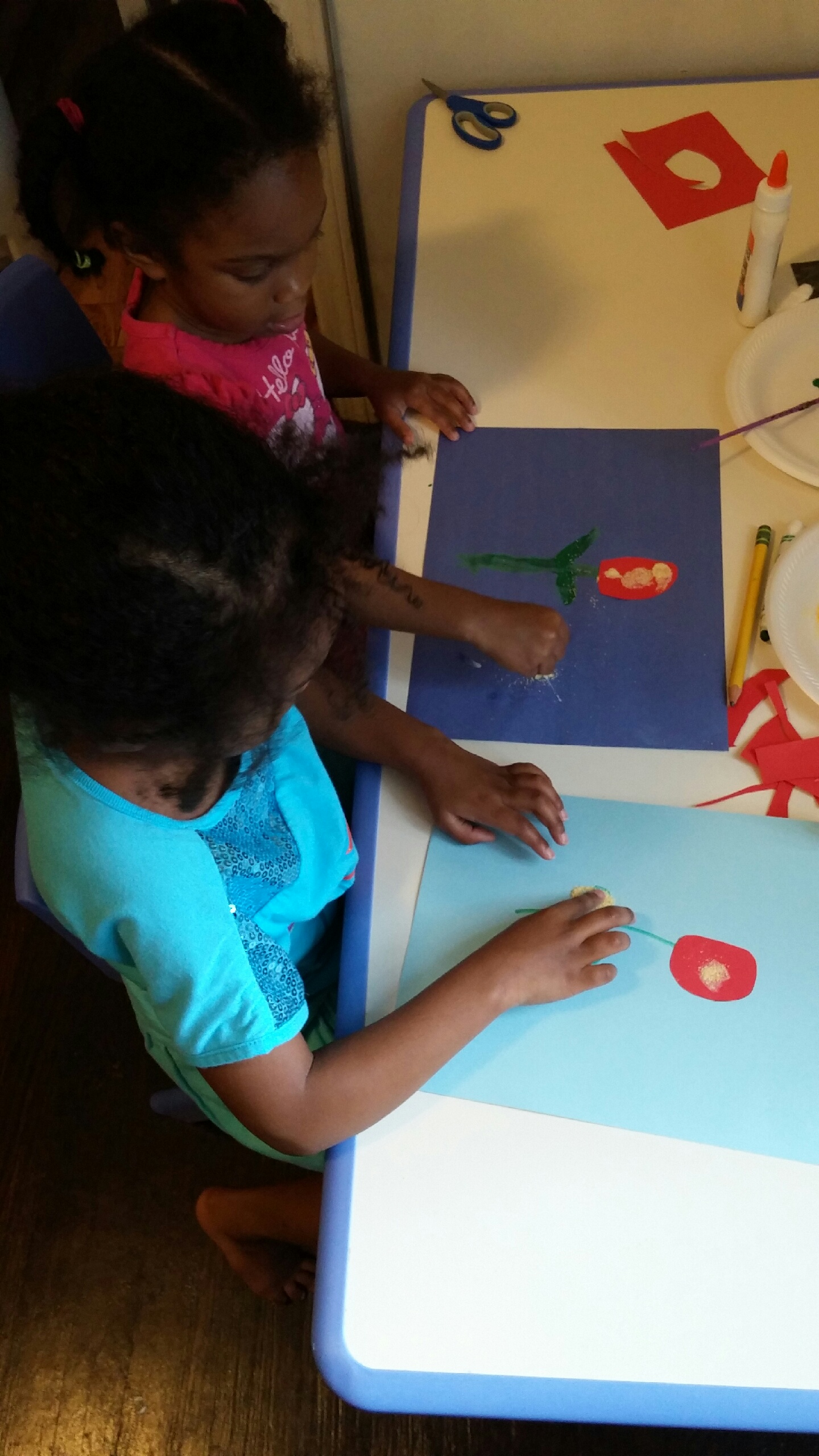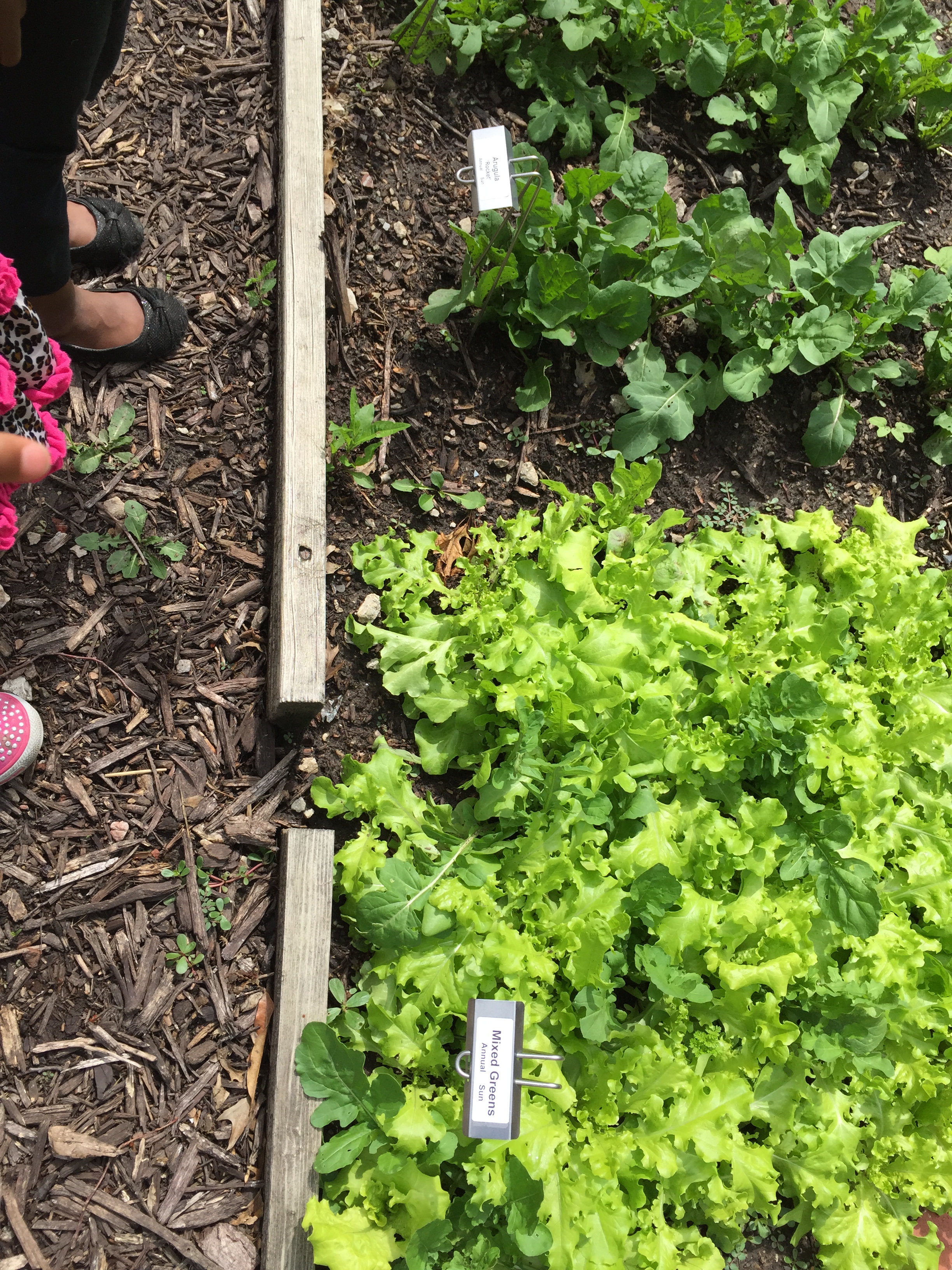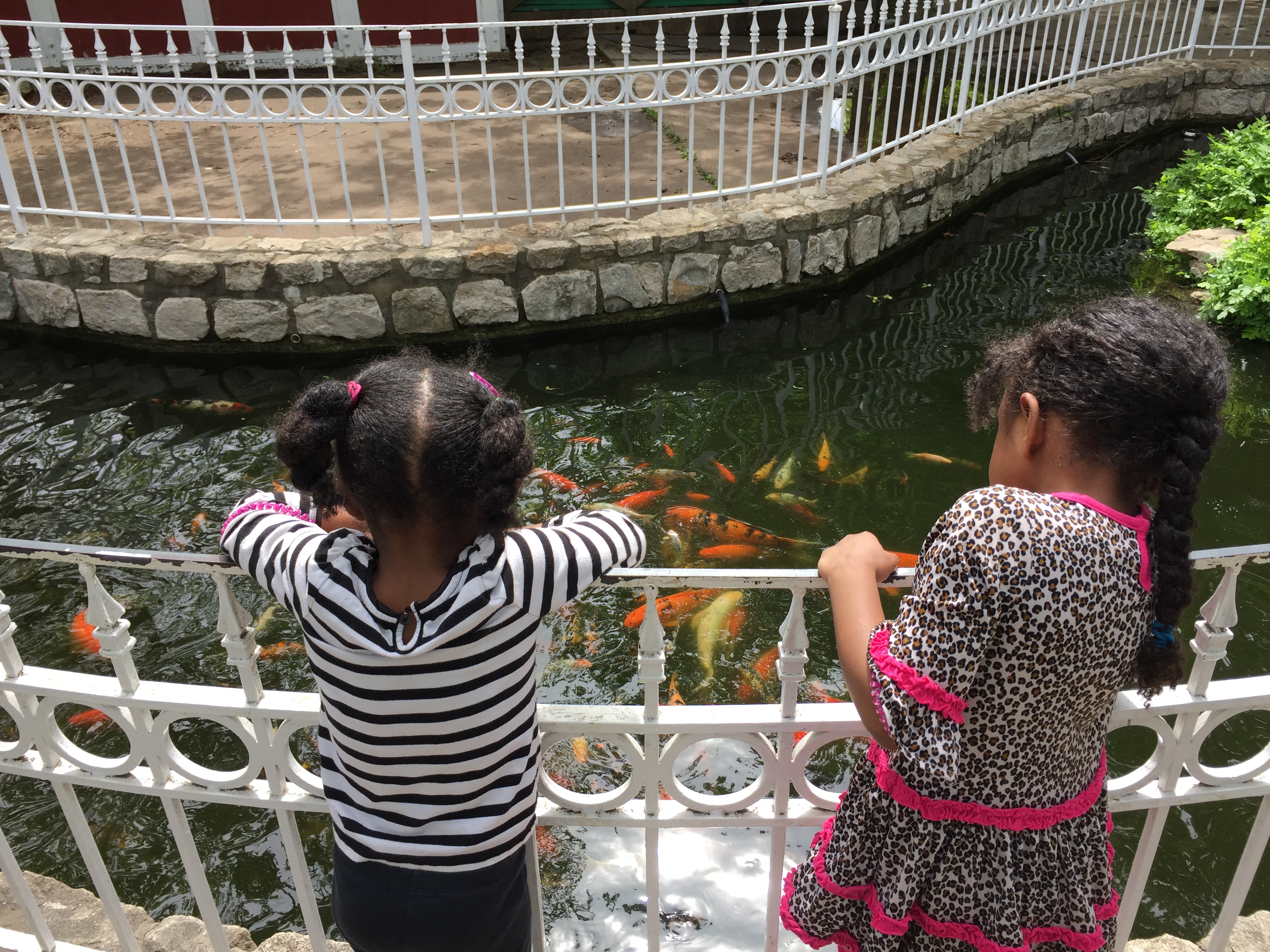 Are next stop was to visit the garden.  The girls saw snow peas, lettuce, potatoes, mixed greens, carrots, and so on. After that, we went to see the rabbit that’s hiding under the rock then off to the Koi pond.