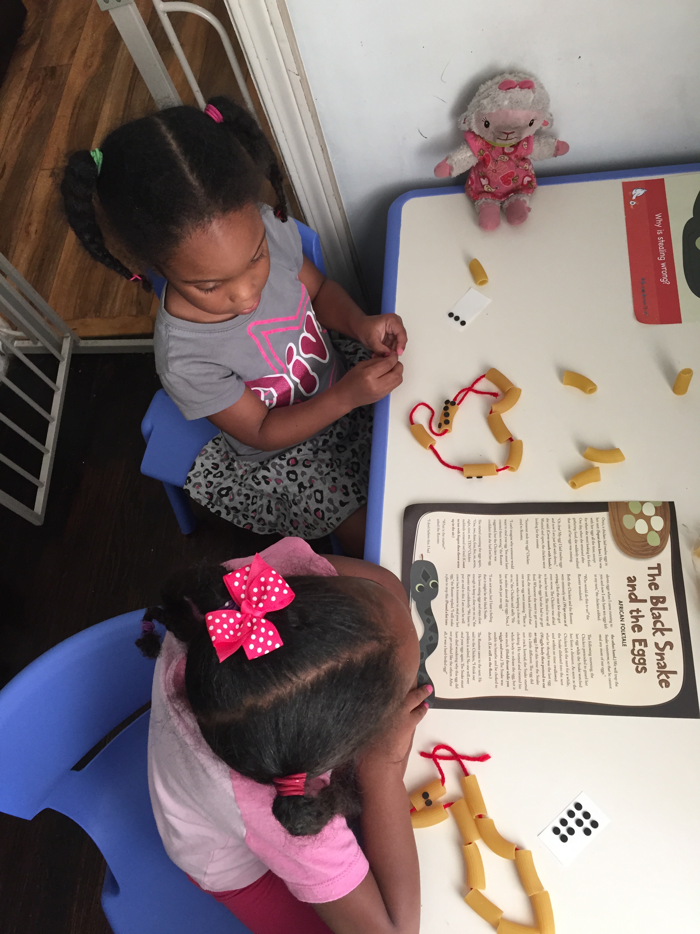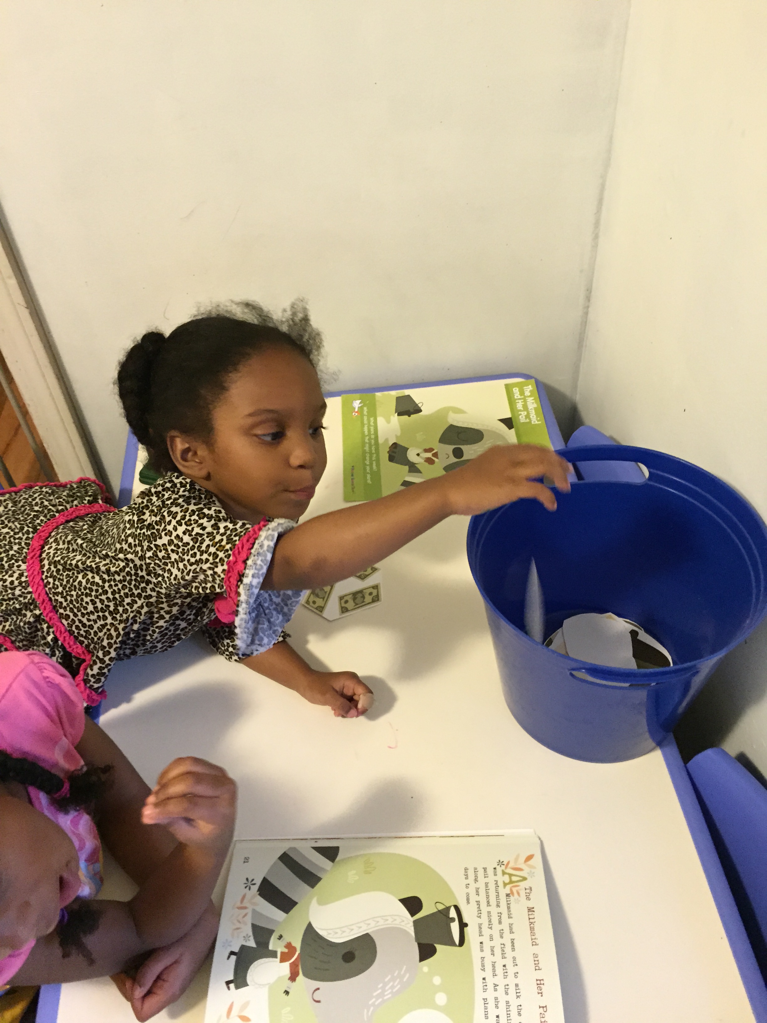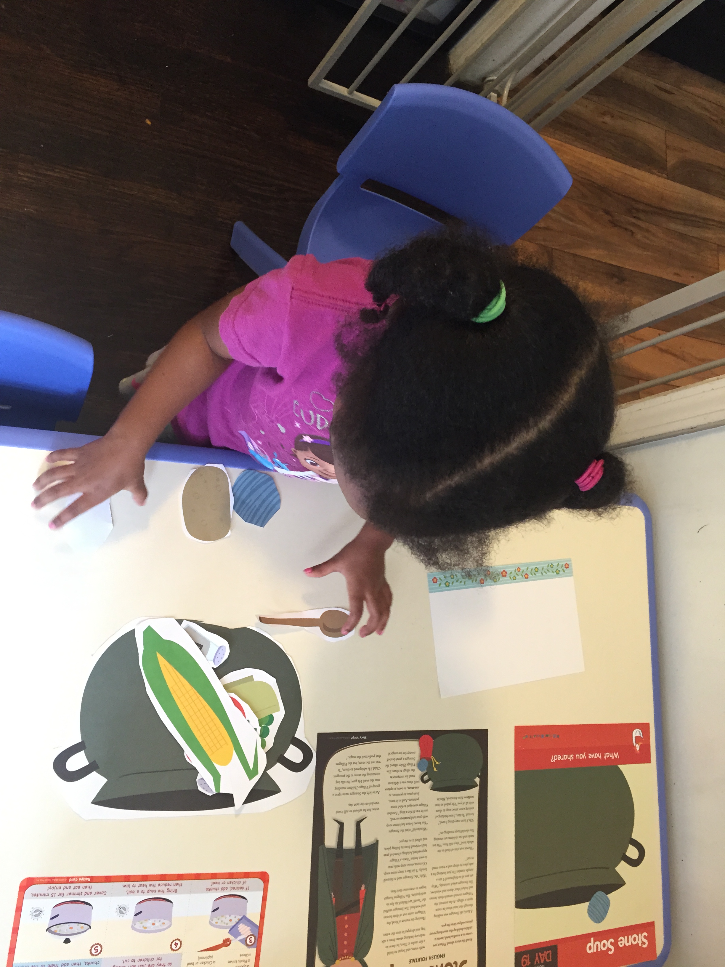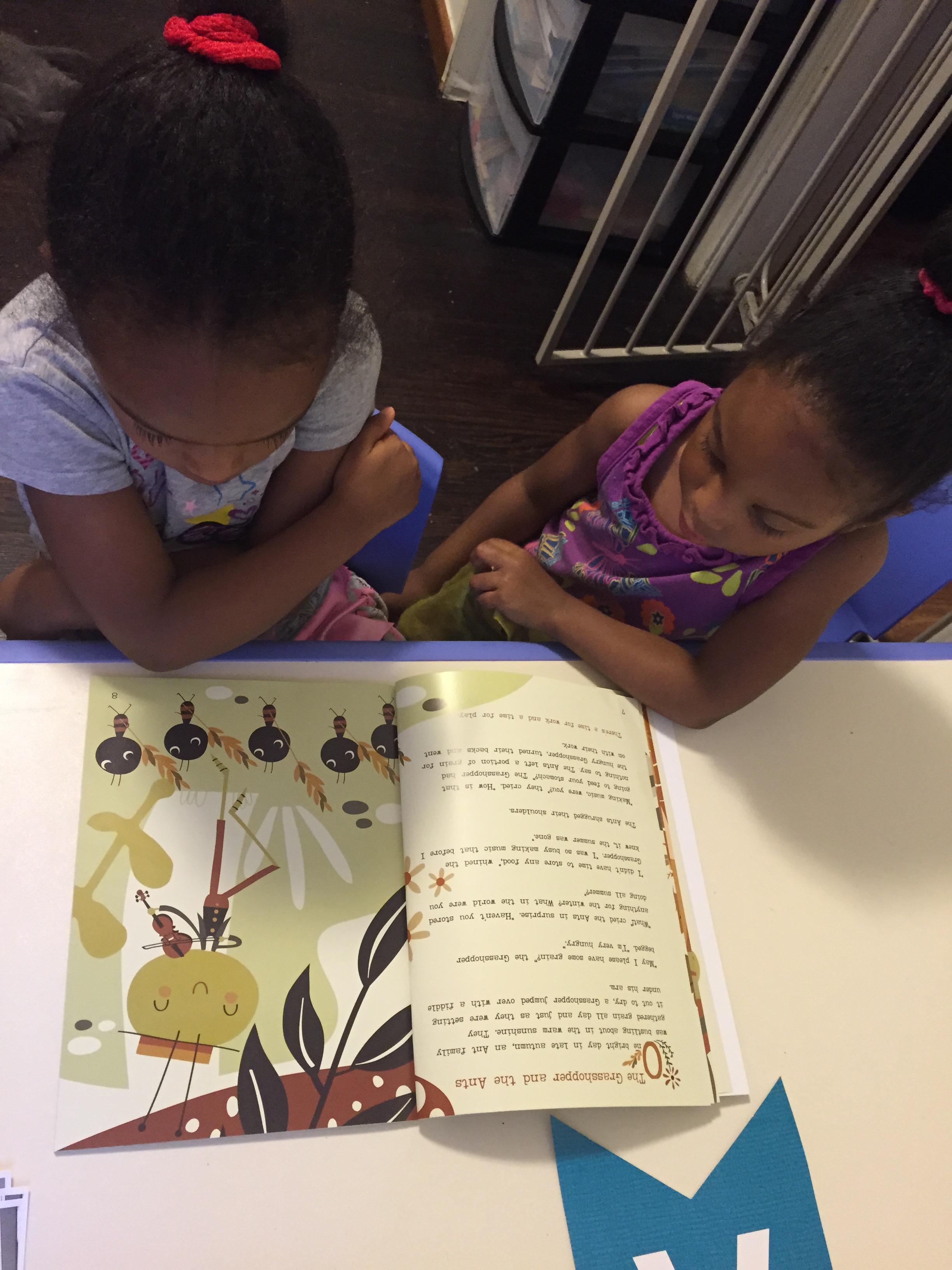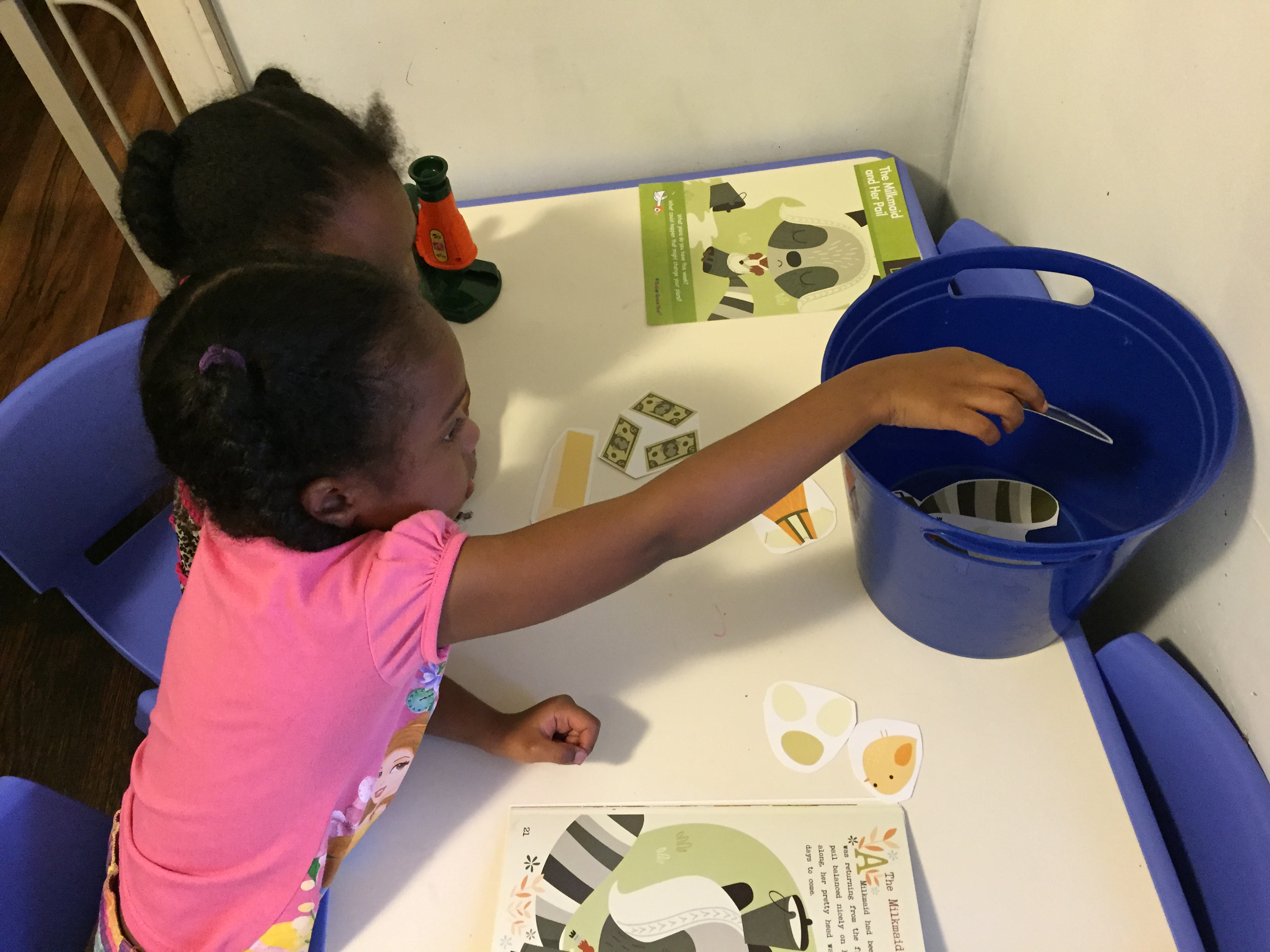 Wednesday story was “Paul Bunyan and the Flapjacks” and the girls loved this story because they love pancakes. We talked about how their dad and I prepare their food for them. I read the story and as I introduce a story item they would pull it to the side.