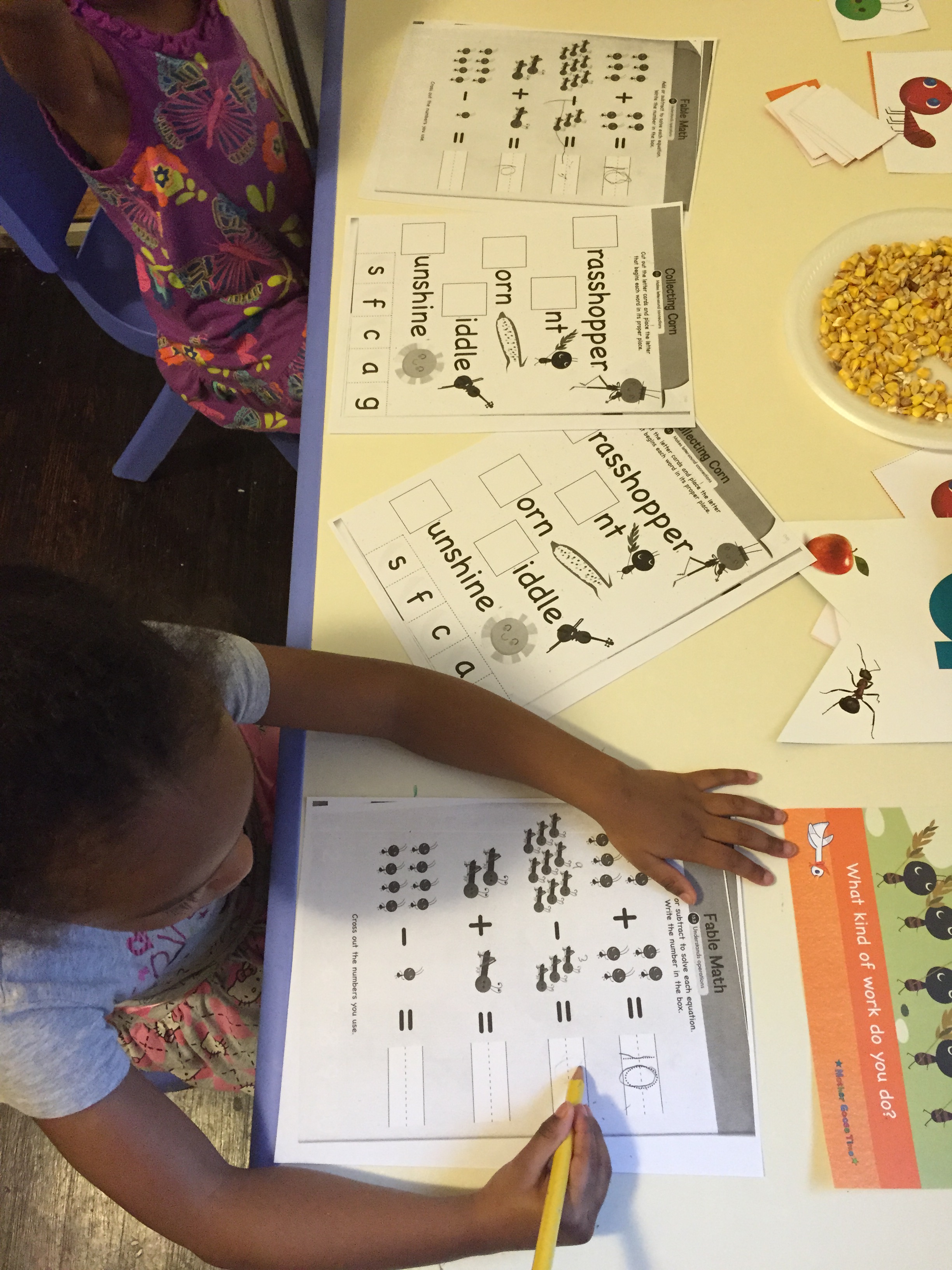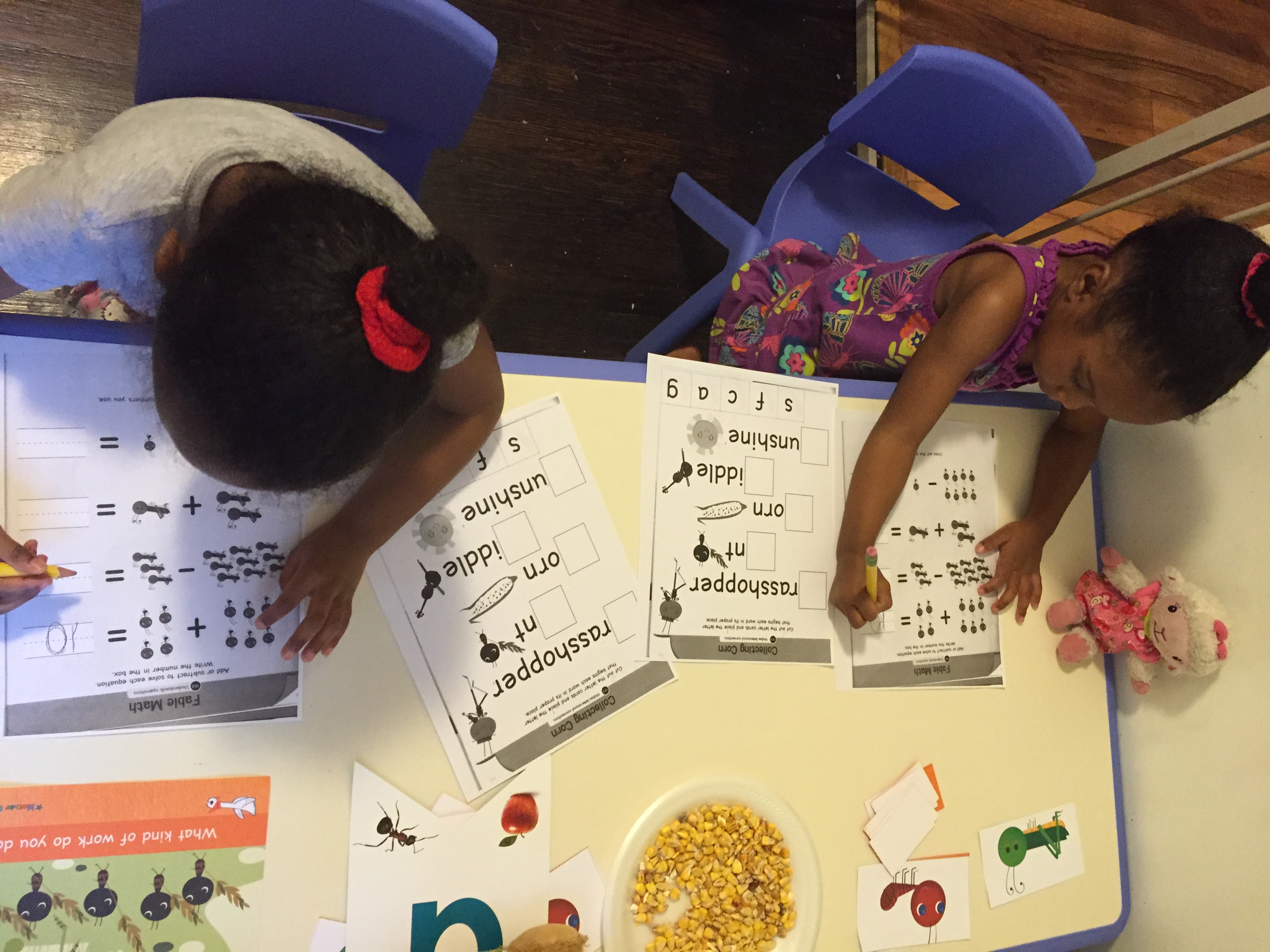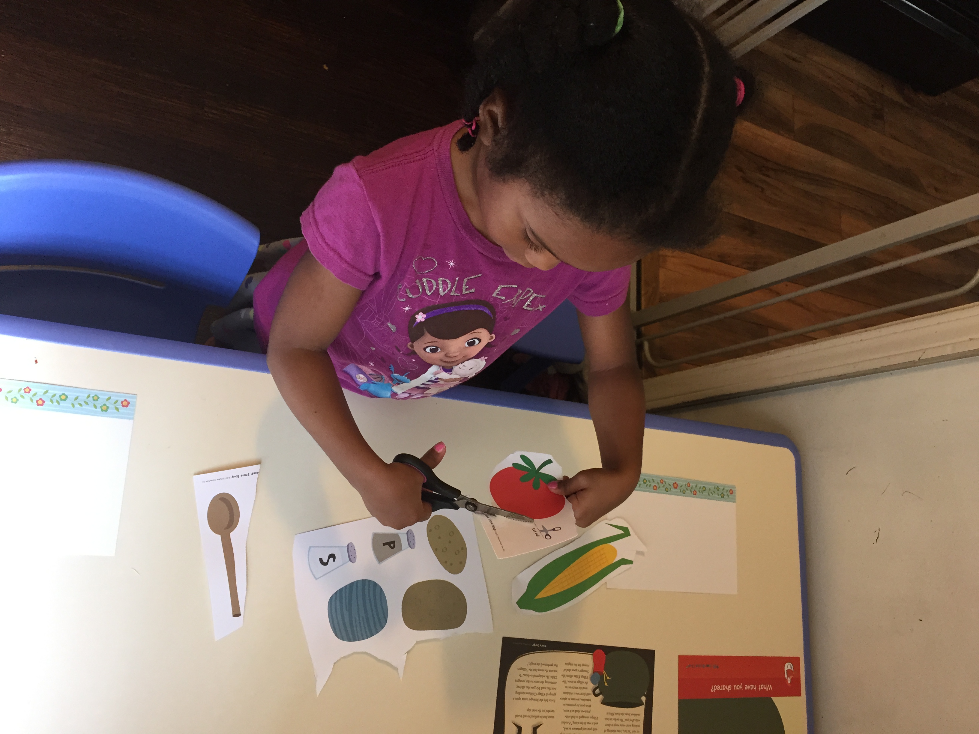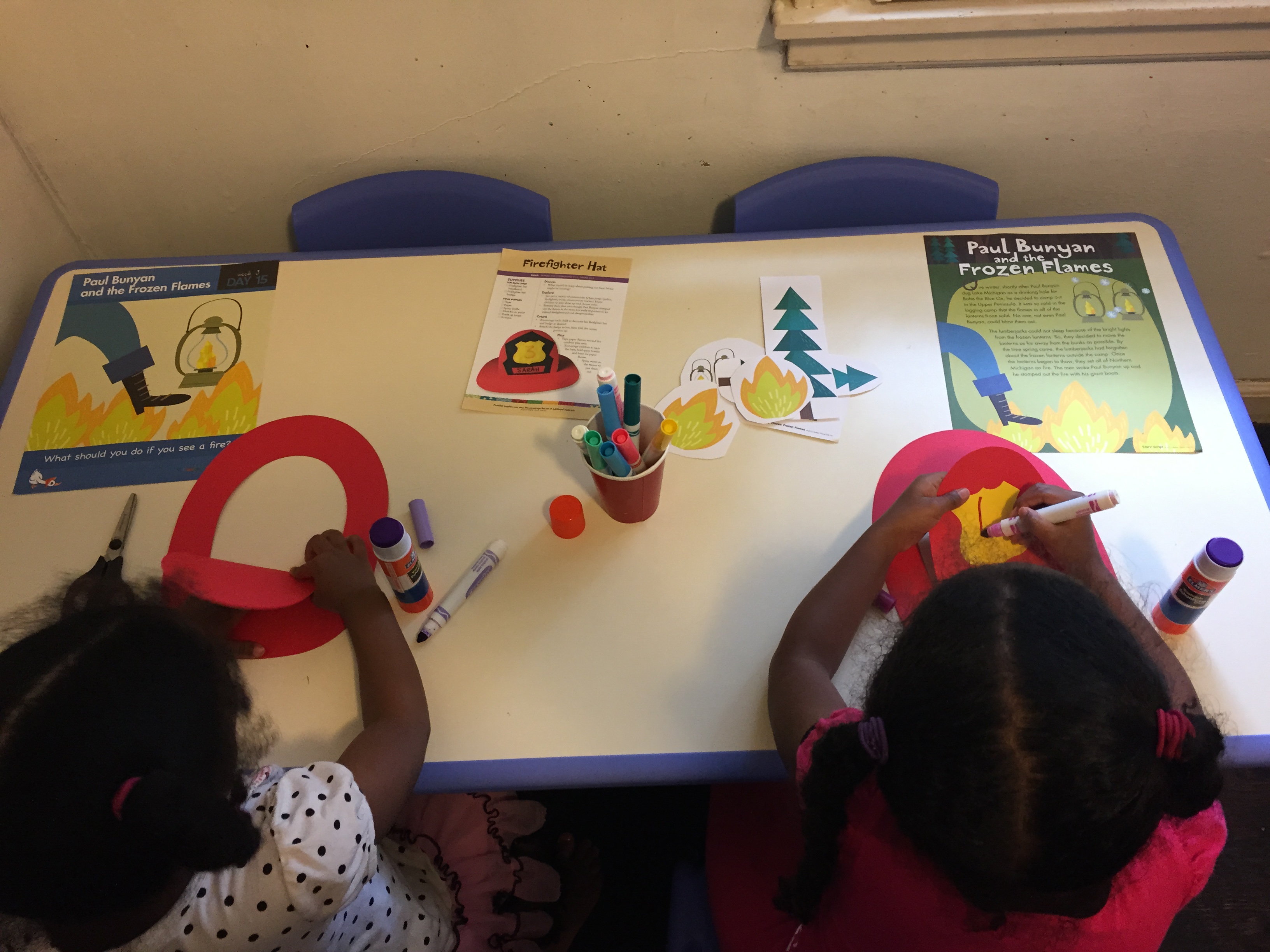 Wednesday story was “Paul Bunyan and the Flapjacks” and the girls loved this story because they love pancakes. We talked about how their dad and I prepare their food for them. I read the story and as I introduce a story item they would pull it to the side.