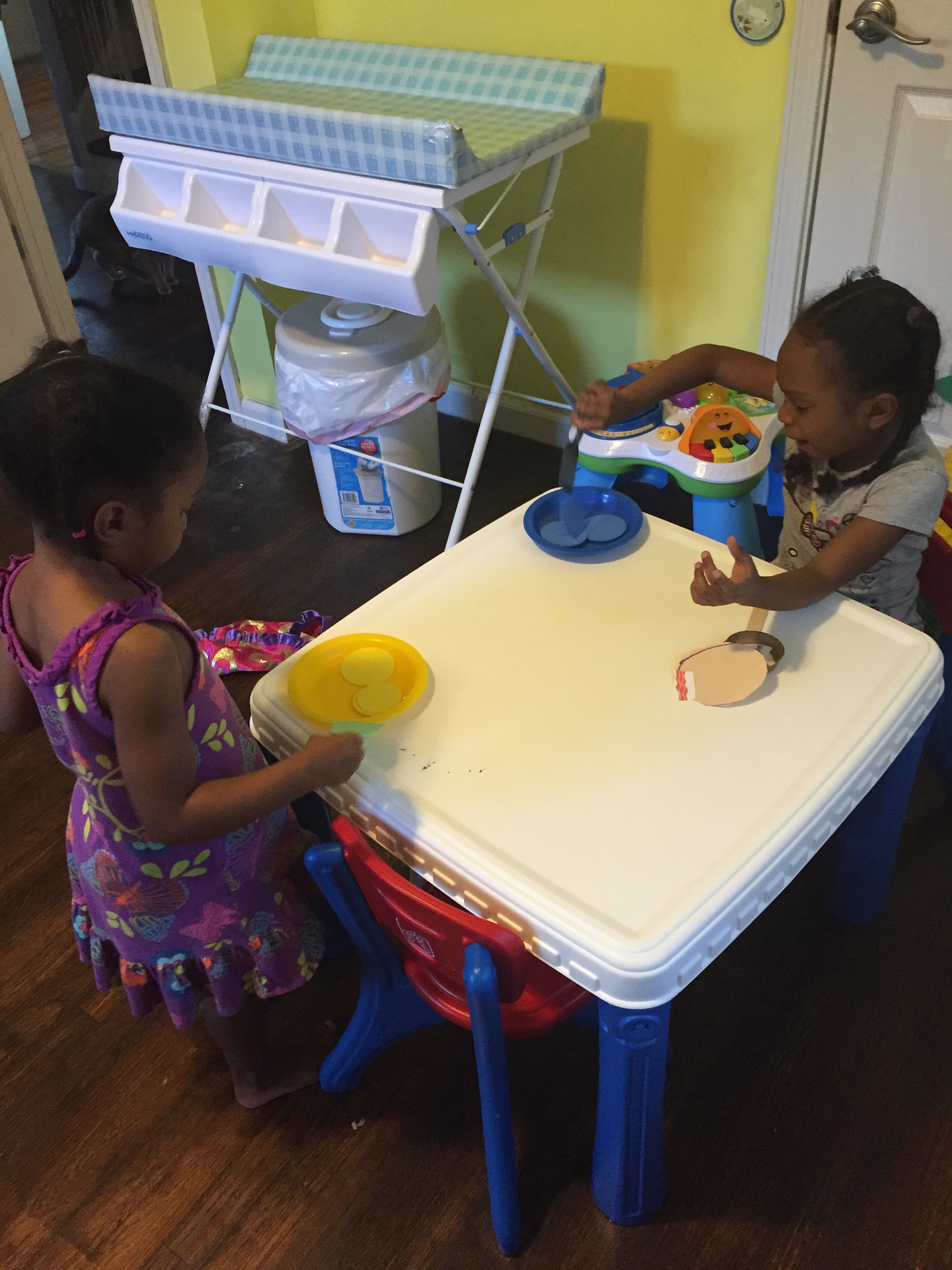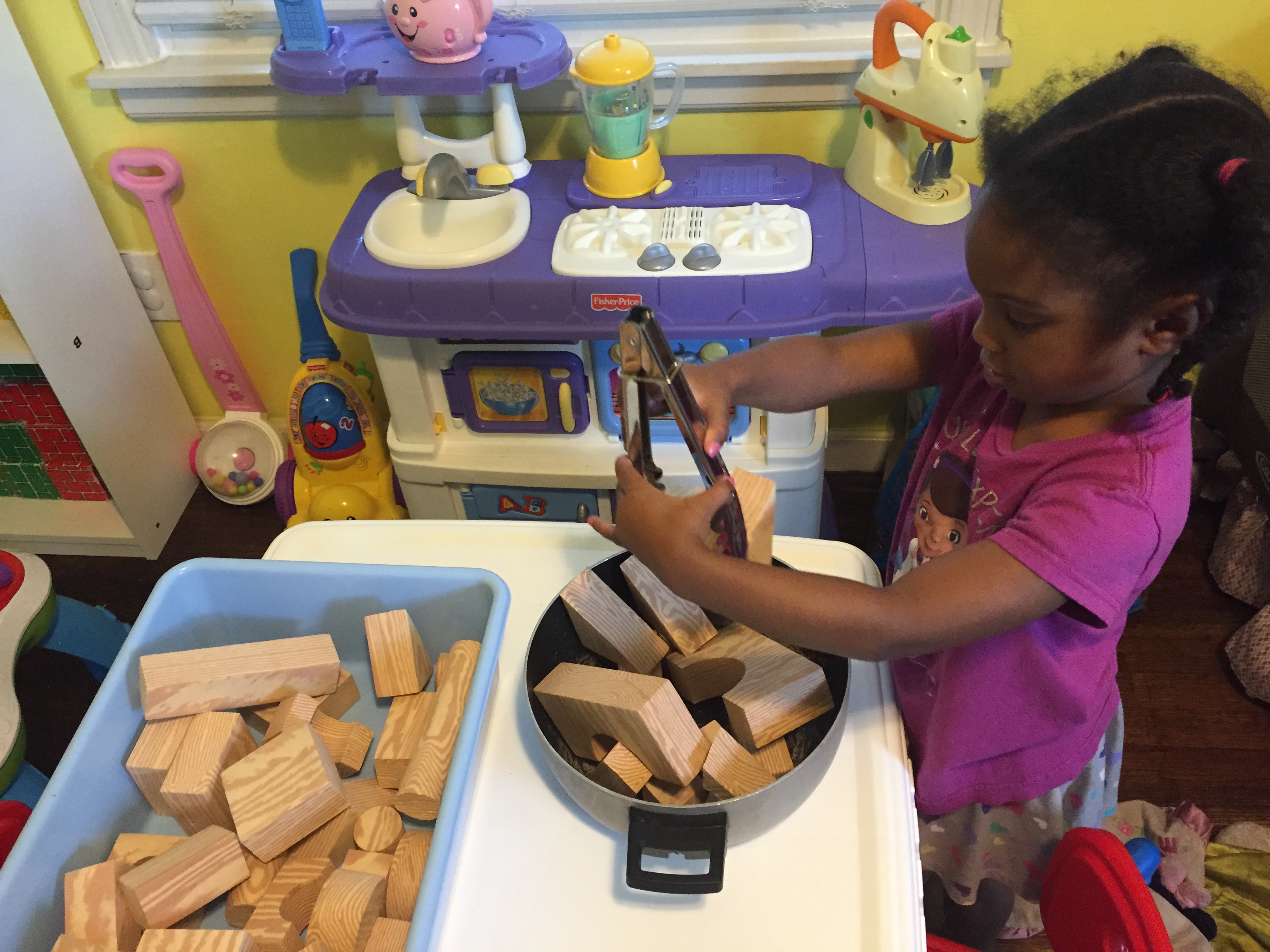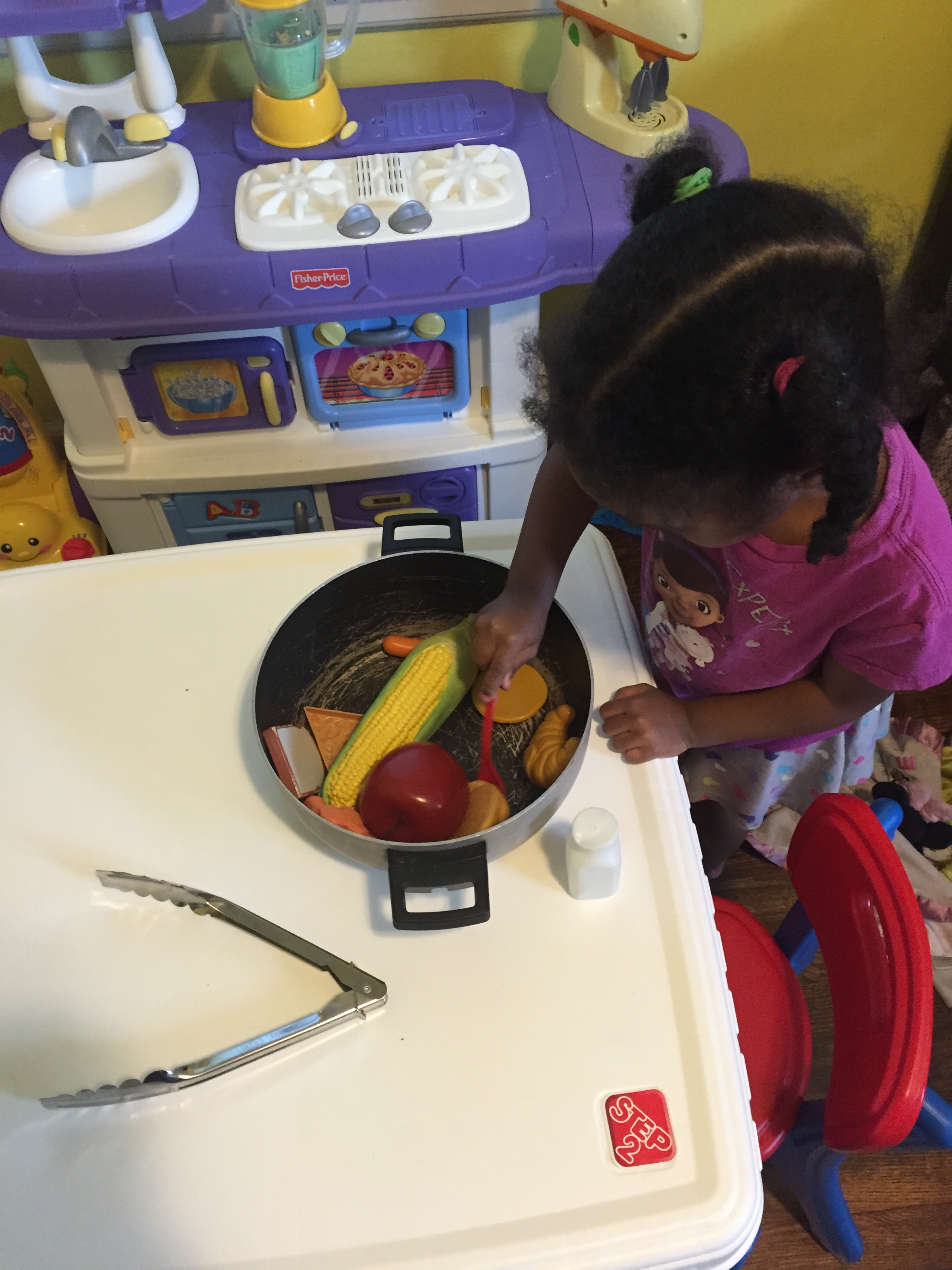 Then the girls made “Breakfast Pan” with the provided MGT materials. The girls took their breakfast pans to the dramatic play area and pretended to cook their breakfast.