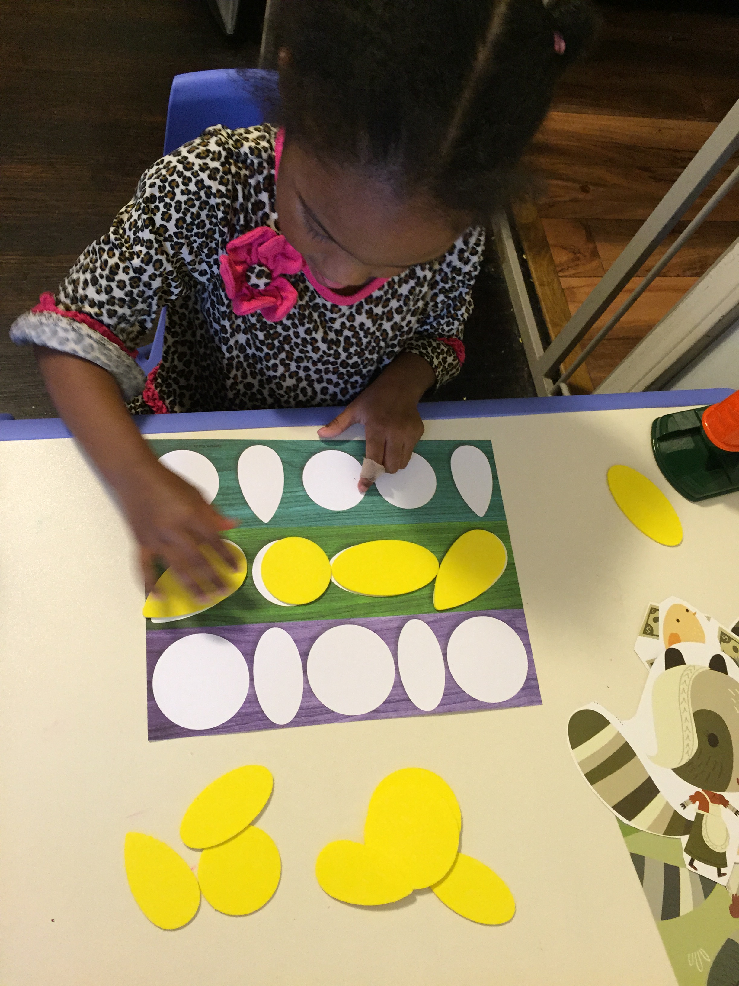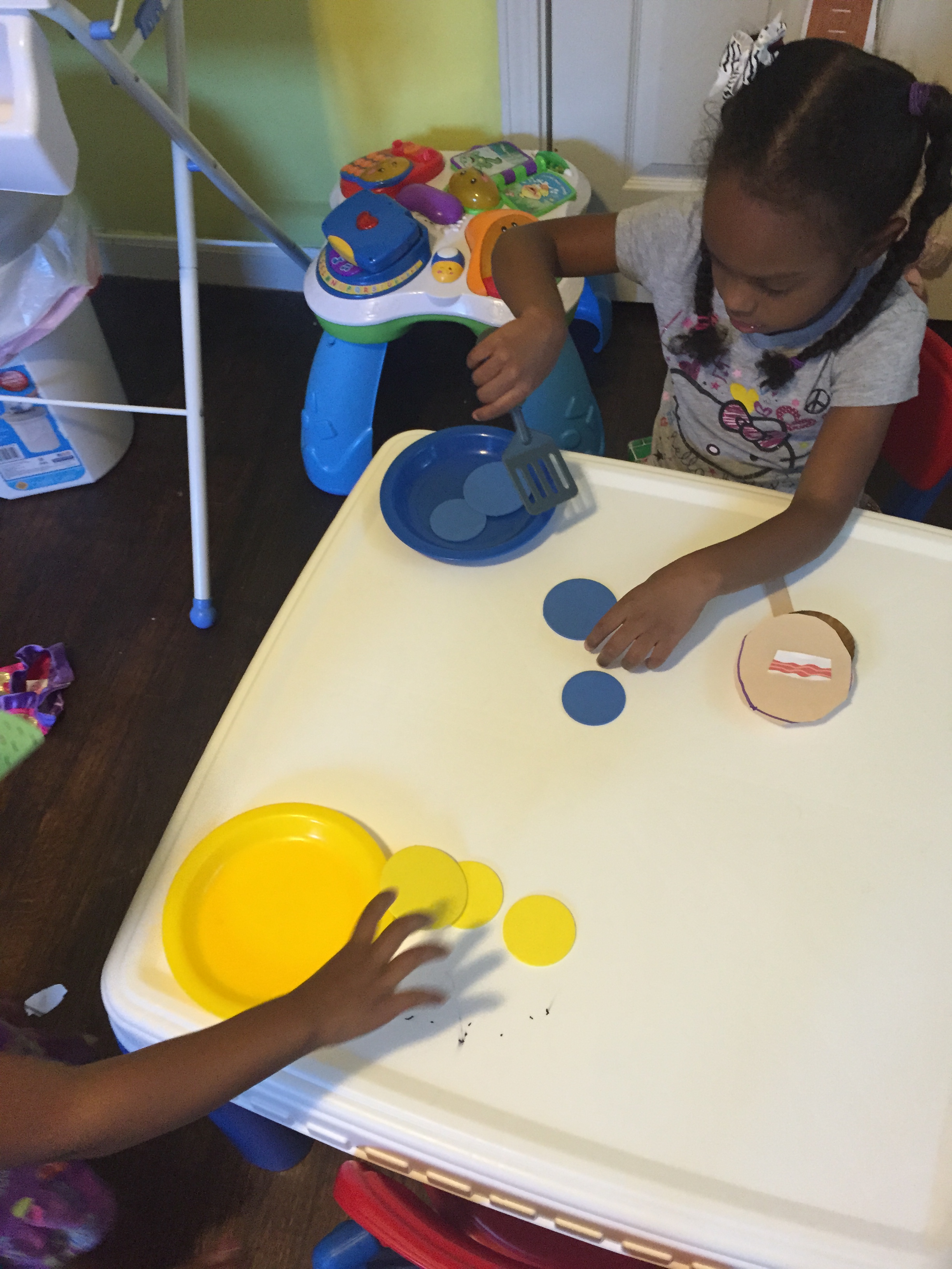 After awhile they pretended the shapes were pancakes and used a spatula to move the shape to a plate.