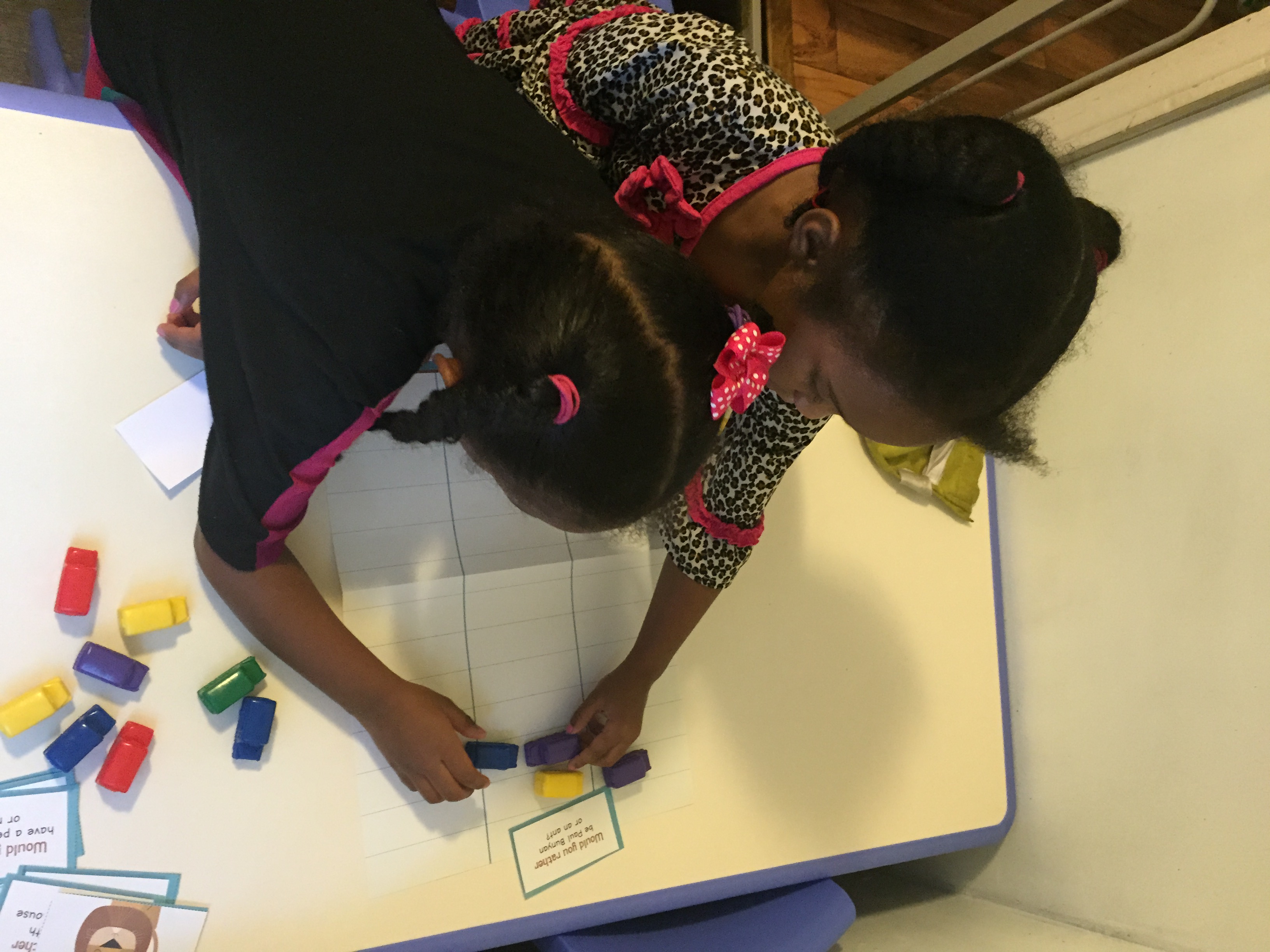 After awhile the girls made a growth chart with the provided MGT materials. I measured them and they measured their My Little Pony’s.