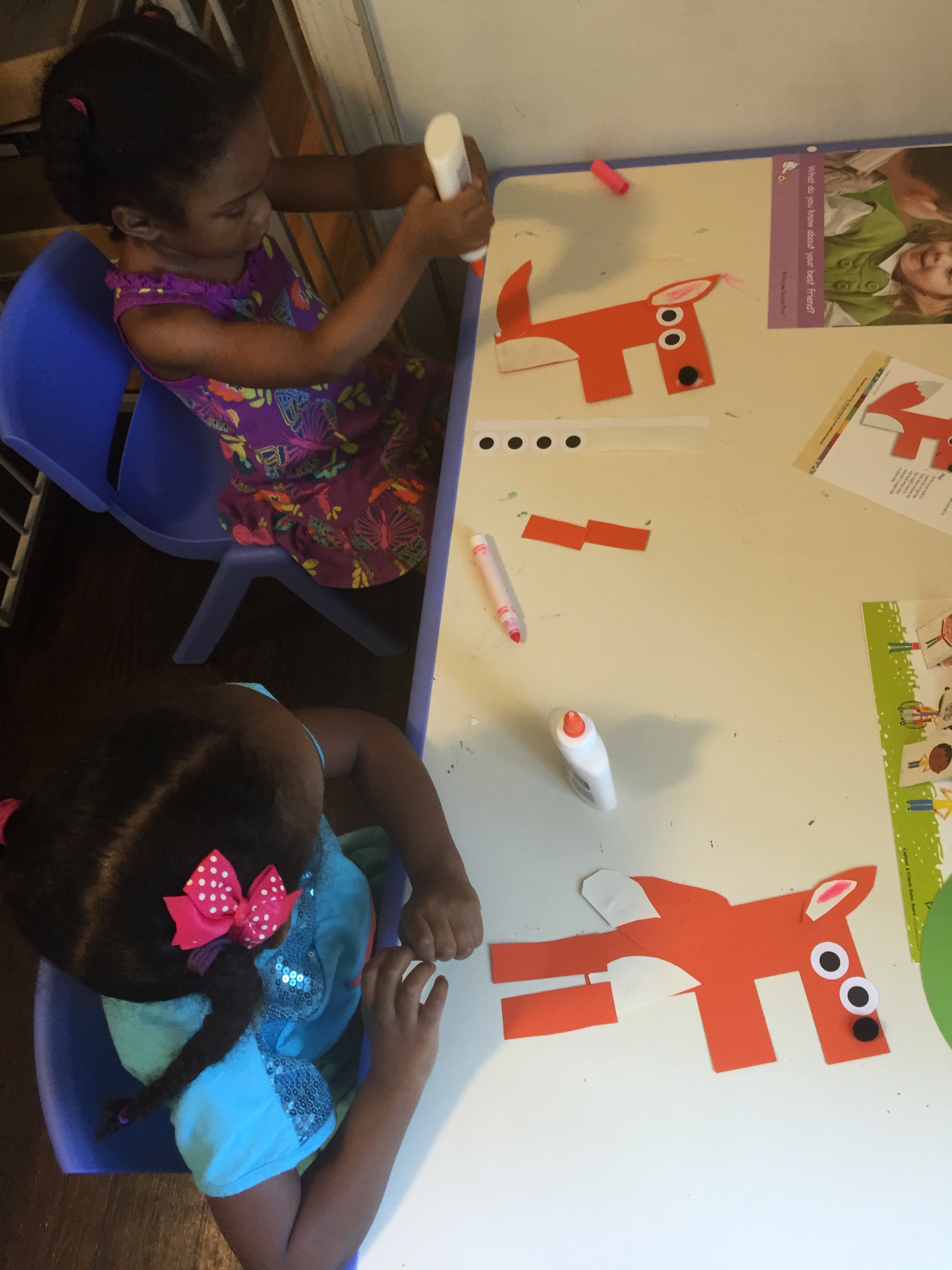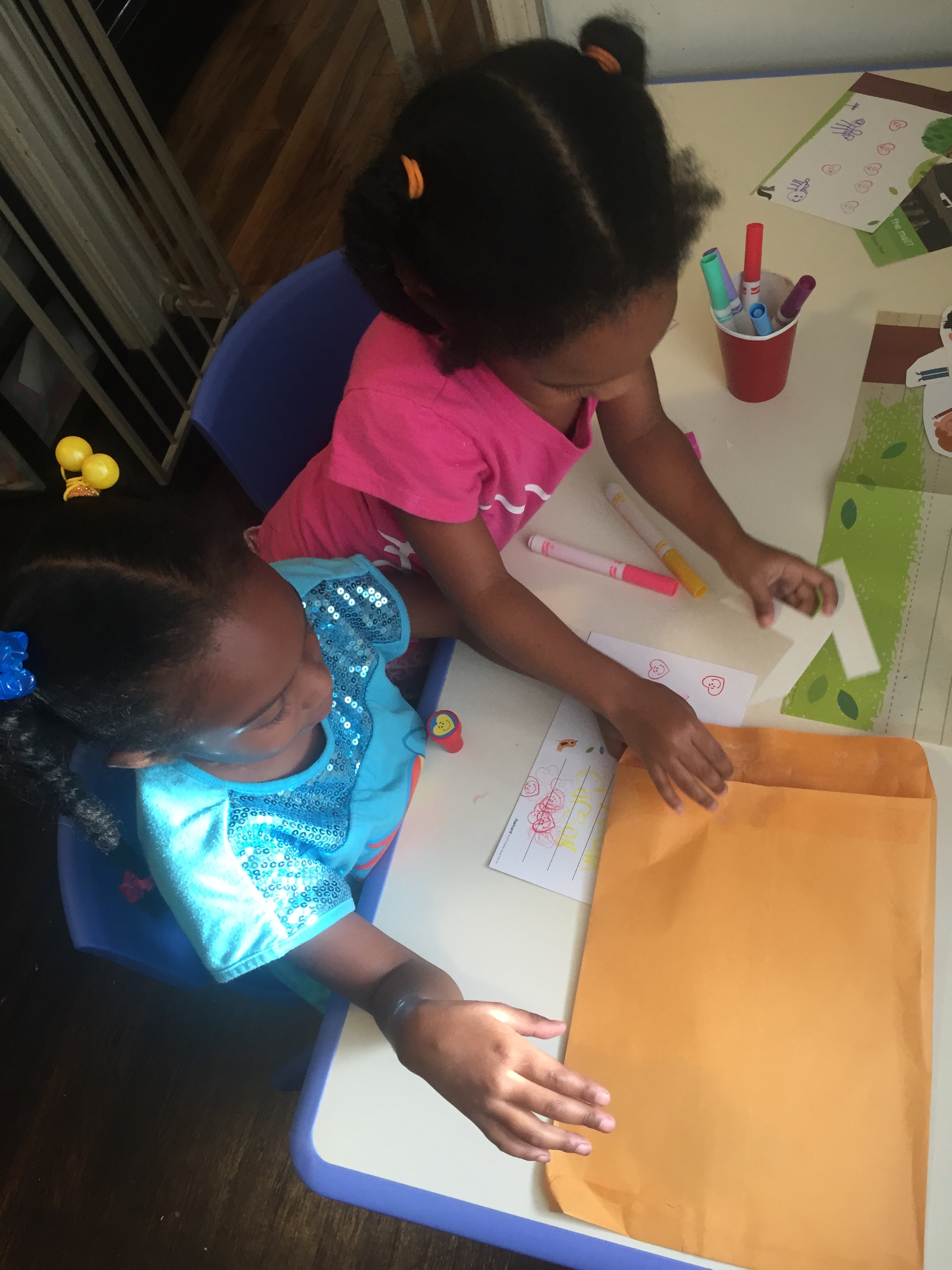 Hey everyone, on Thursday with Mother Goose Time the girls learned about mail. We talked about what they would like to get in the mail and they both said “gifts.” Then the girls wrote a “Dear Elephant” postcard the girls enjoyed this project.