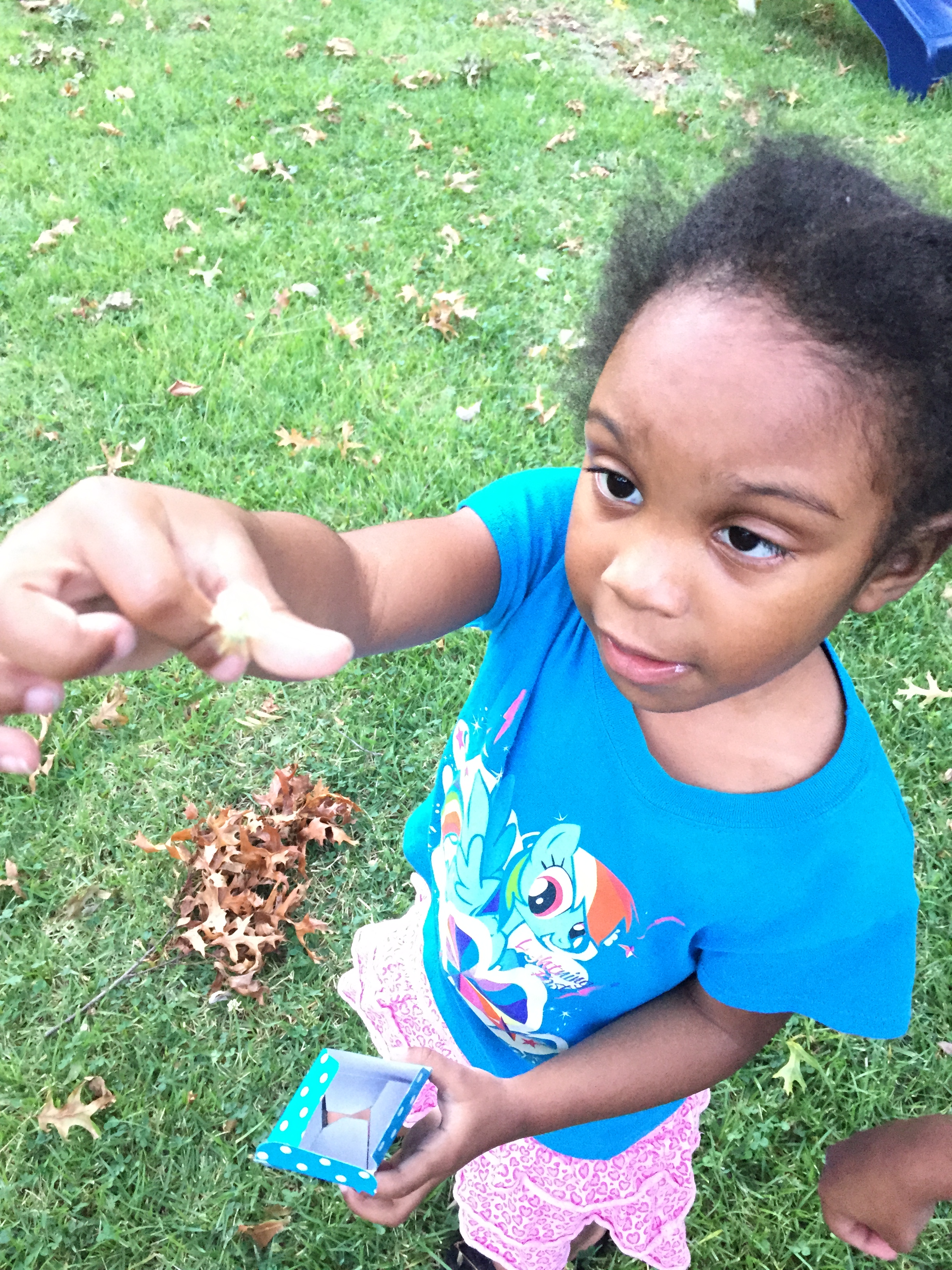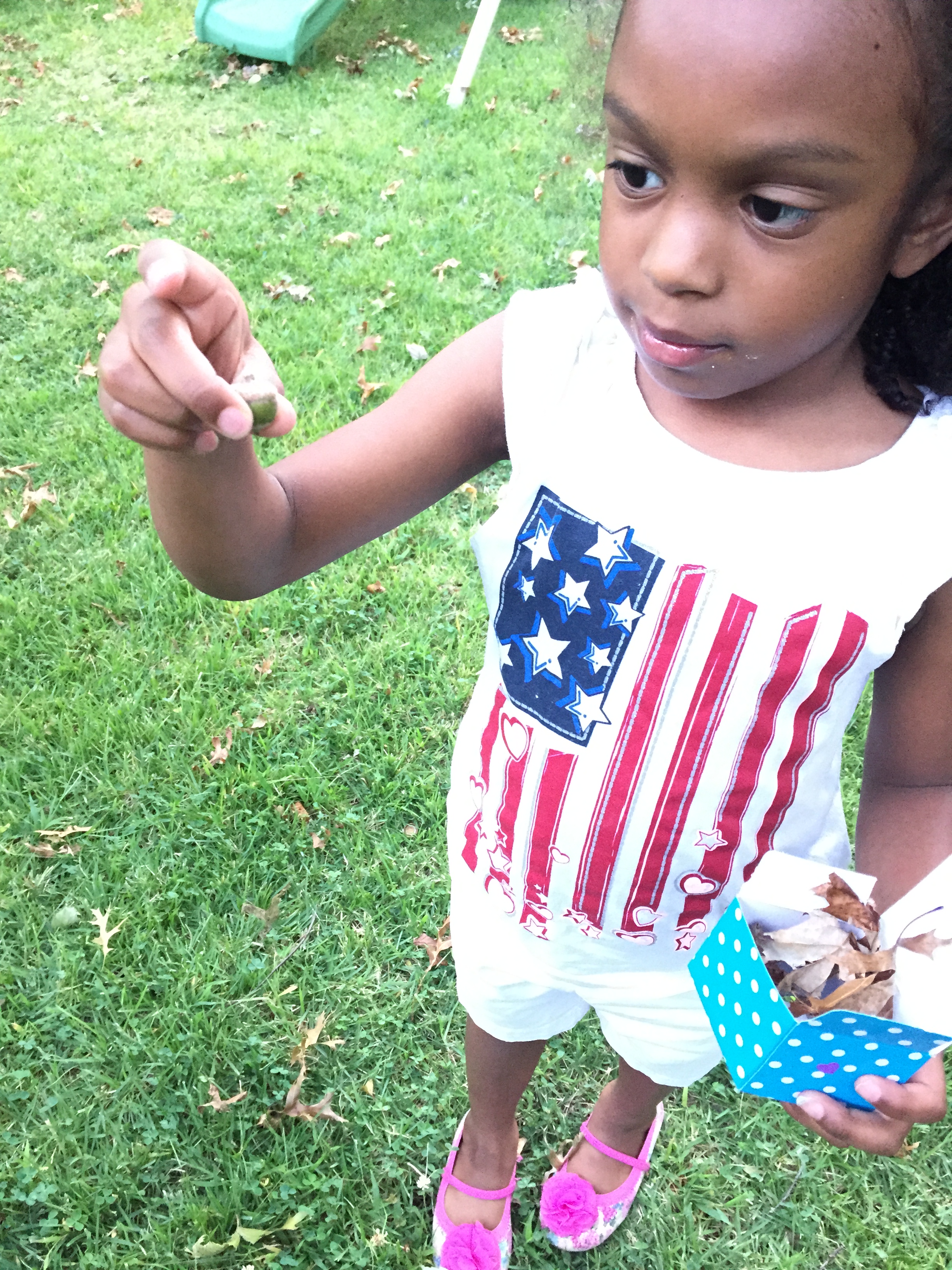 Then I took the girls outside to collect small items from outside to put them in their share boxes and they shared what they found inside.